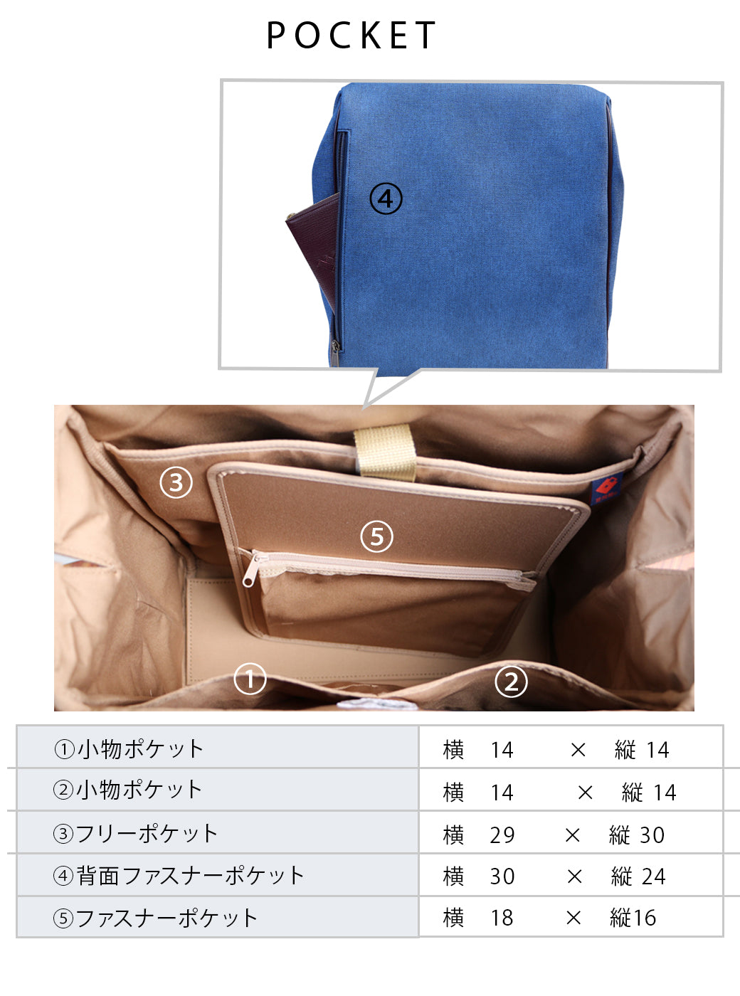 仕様 外装:ファスナーポケット×1 内装:(前)手帳サイズポケット×2 (後)タブレット収納×1 (仕切り) ミニポケット×2