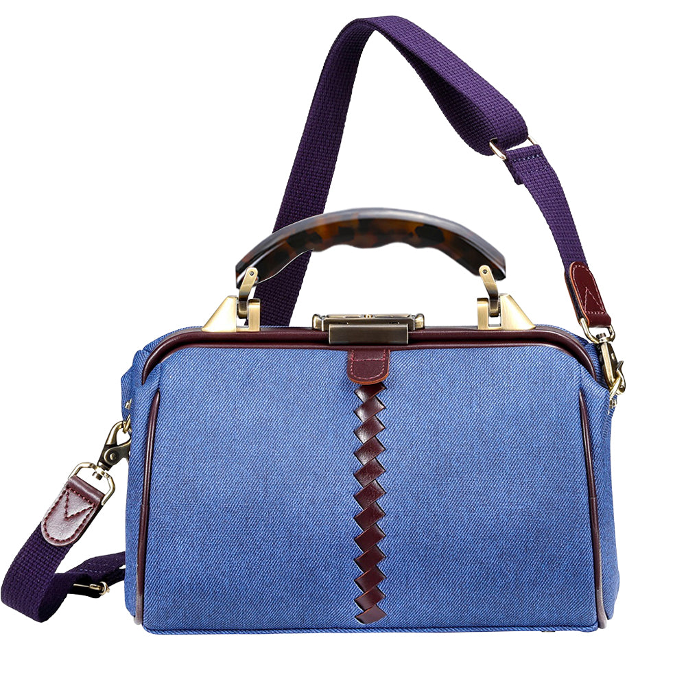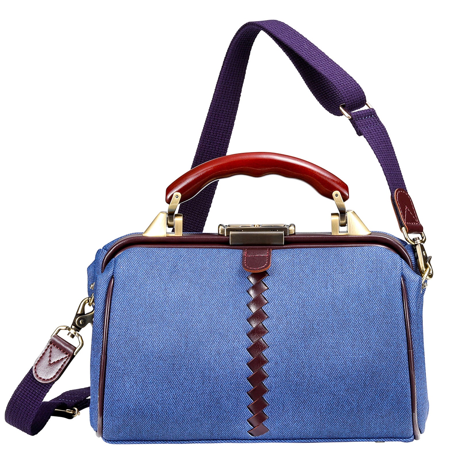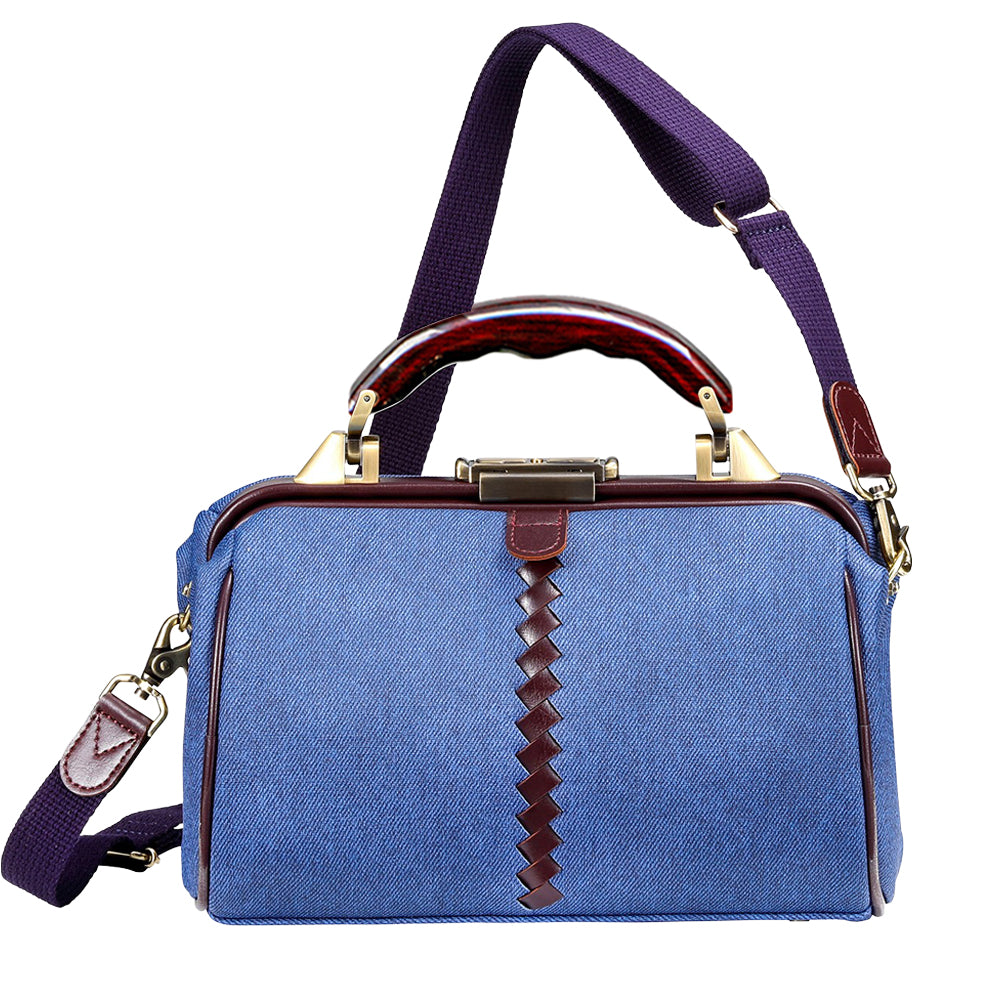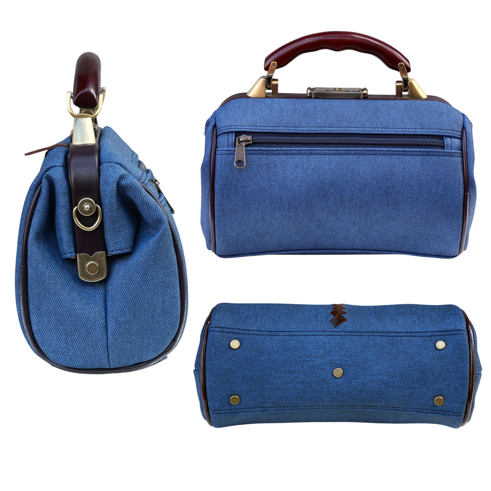 レザー部分はバーガンディでカジュアルな印象のデニムをビジネスシーンでも上品に演出。ハンドルは木目の美しい天然木でゴールドの金具と合わせてアンティークな仕上がり。休日のデニムスタイルでも、仕事のクールビズスタイルにもどちらも合わせやすい逸品。