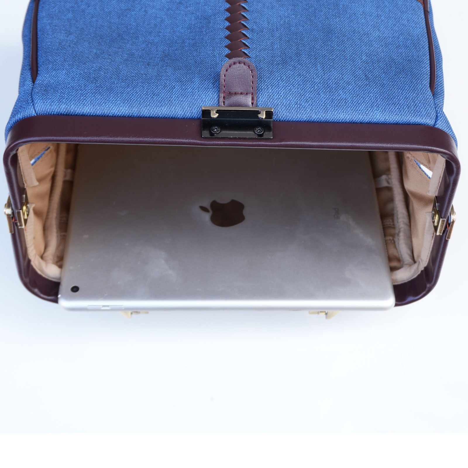 そんな悩みを解決すべく本体はデニム素材に見えますが、雨に強く色落ちしない国産PVC素材を使用。そして見た目以上に軽いのが魅力。