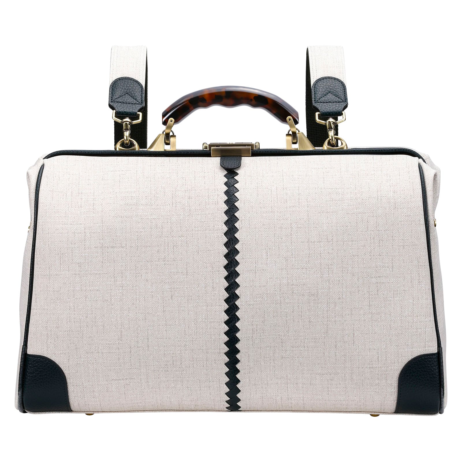 ダレスバッグの大きく開くフレームはPCや書類も取り出しがスムーズ。