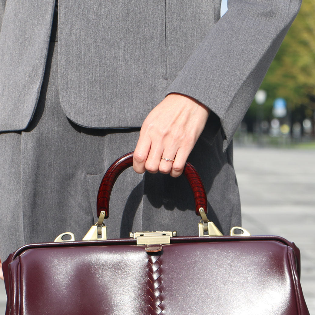 This high-end model has a handle made of Japanese zelkova wood with beautiful grain, which is then layered with transparent lacquer to create a finish that allows the grain to show through. The grain becomes more prominent with use, and you can enjoy the aging process like denim. The long handle also makes it easy to hang on your arm and take out your wallet or smartphone.