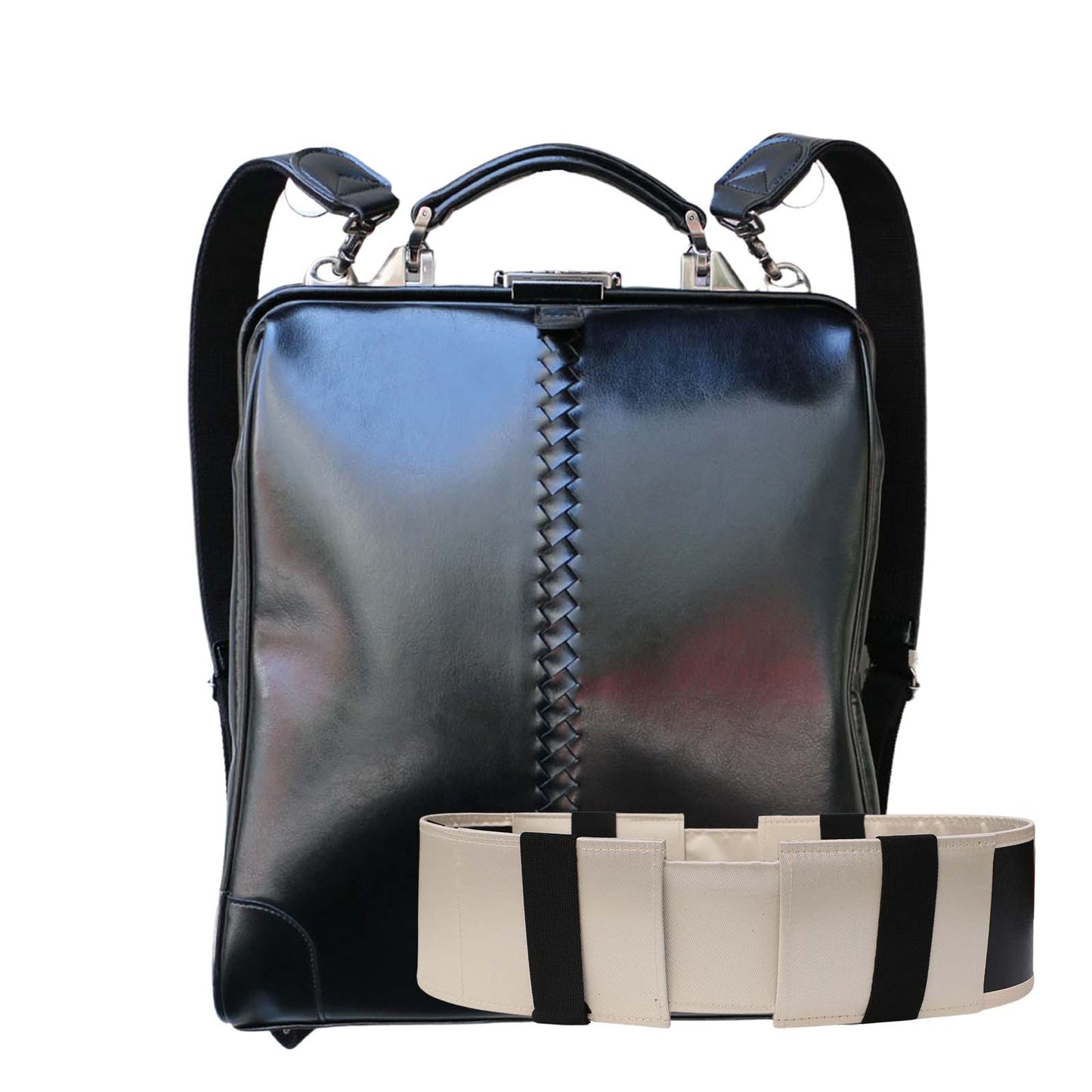 Made from soft, Japanese synthetic leather that is rain-resistant, lightweight, and has a glossy calf leather-like texture.