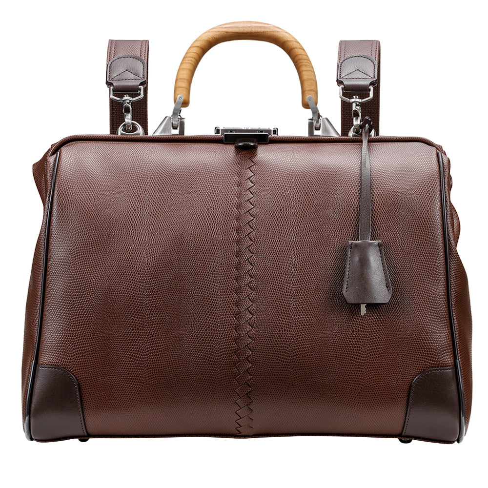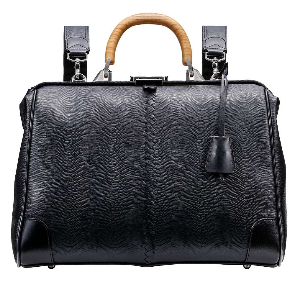Toyooka-san Certified Dulles with wooden handle using luxury lizard type push PVC (synthetic leather). A lizard type with a lizard with a glossy to reproduce the texture of a genuine leather, a luxury finish with a wooden handle with a beautiful wood grain. Sewing is a "Toyooka" that has cleared strict standards by Hyogo Prefectural Industrial Union, "Toyooka" brand is relieved for a long time.
