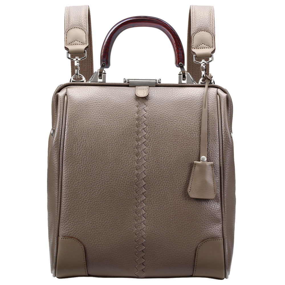 We use ELK leather (a Japanese synthetic leather) which is light, rain-resistant, and has a supple, firm texture similar to "Togo" calf leather.