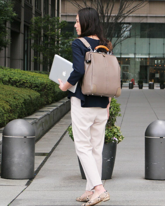 It has a large capacity that can neatly store A4 files and 14-inch PCs, but is compact enough for women to carry stylishly on their backs.