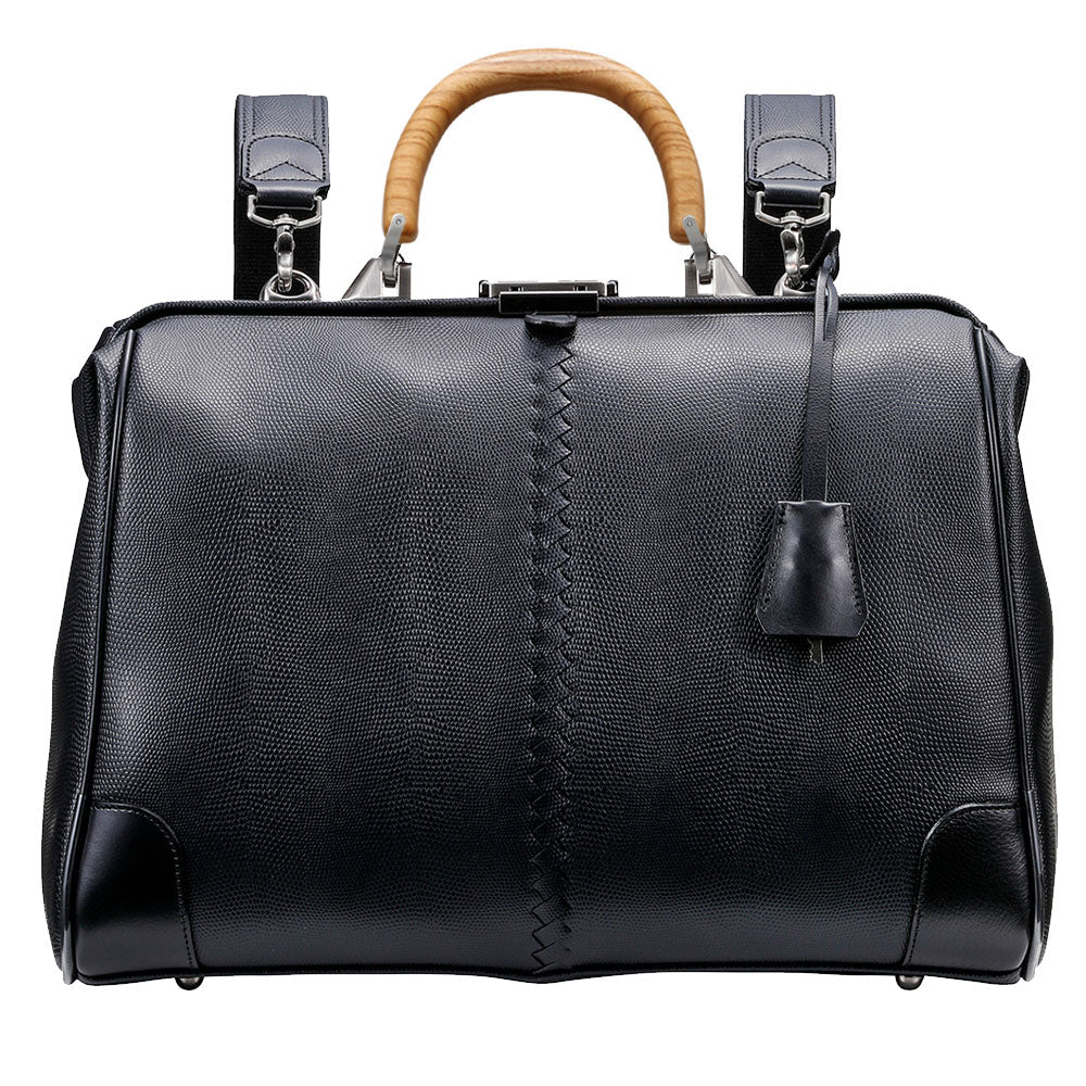 ◆豊岡鞄認定【ナチュラルロング木手ハンドル SET】ダレスバッグ 豊岡鞄 本革付属 Mサイズ YK7【LIZARD】ブラック