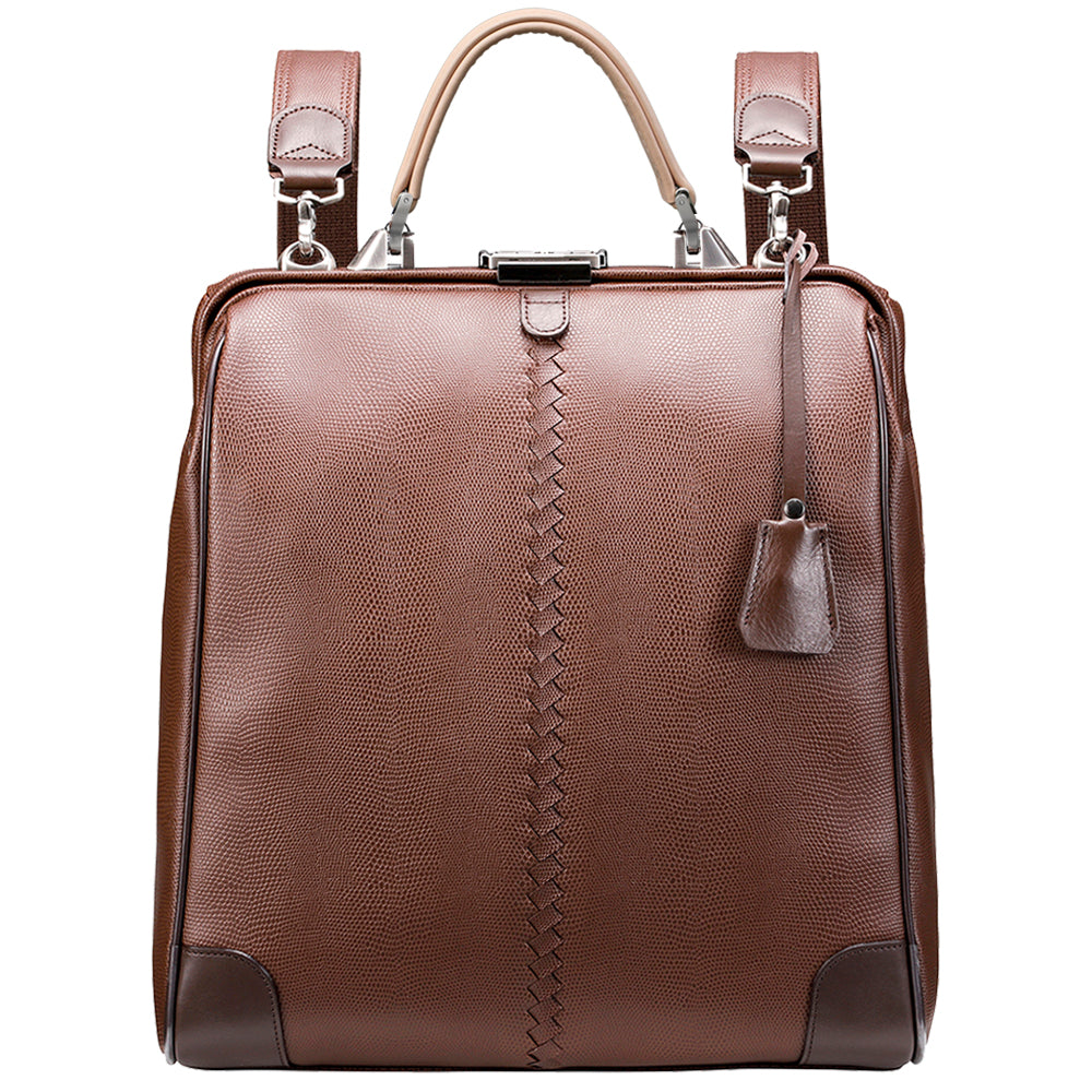 ラグジュアリーなリザード型押しPVC(合成皮革)を使用した豊岡鞄認定ダレスをハンドルは上質な国産ヌメ革を贅沢に使用したロングハンドルをカスタマイズしたスペシャルモデル。 ハンドバッグのような見た目で腕にかけて持てるようになり、財布やスマホを取る時に便利です。 使い込むと色艶が増し、革のような経年変化を楽しめます。