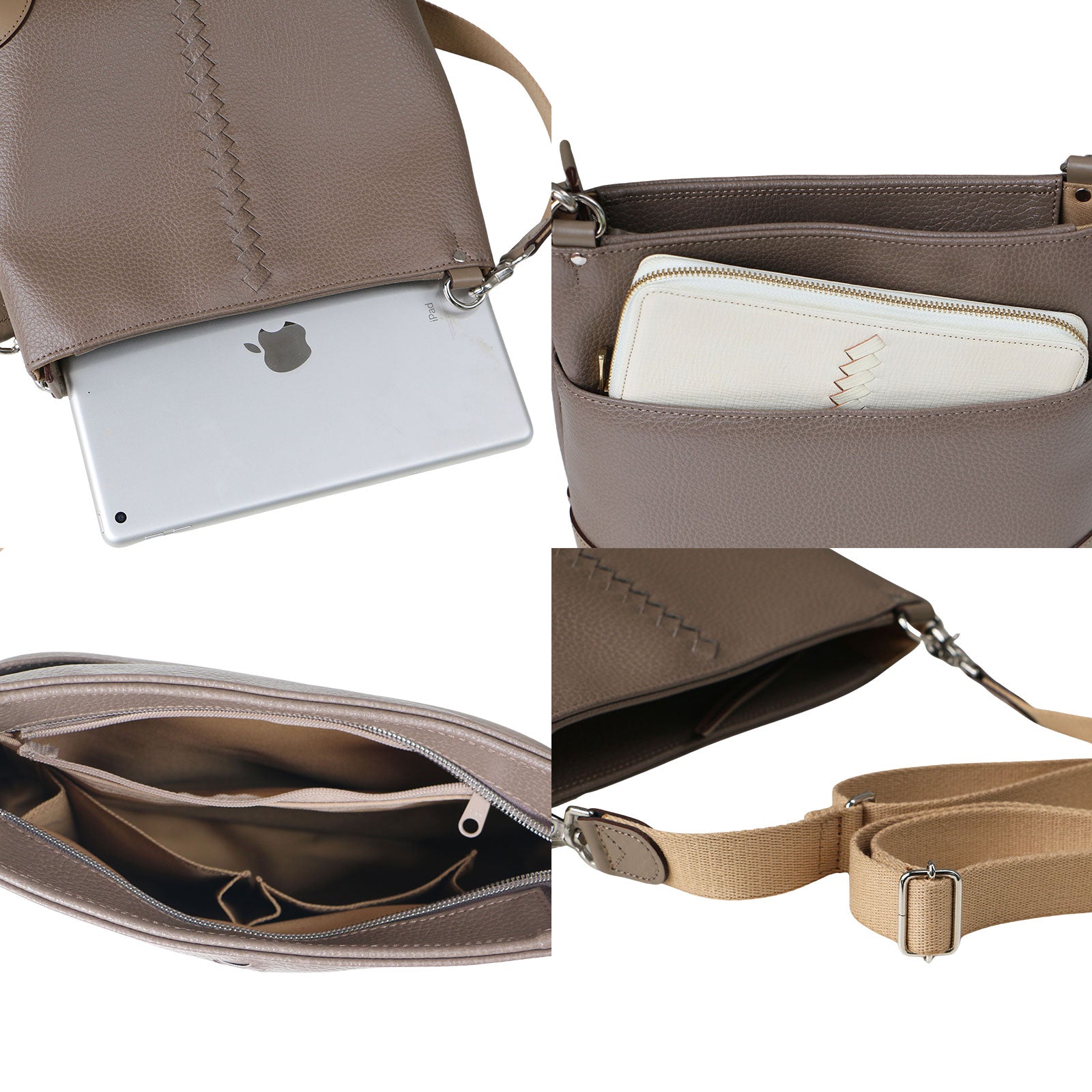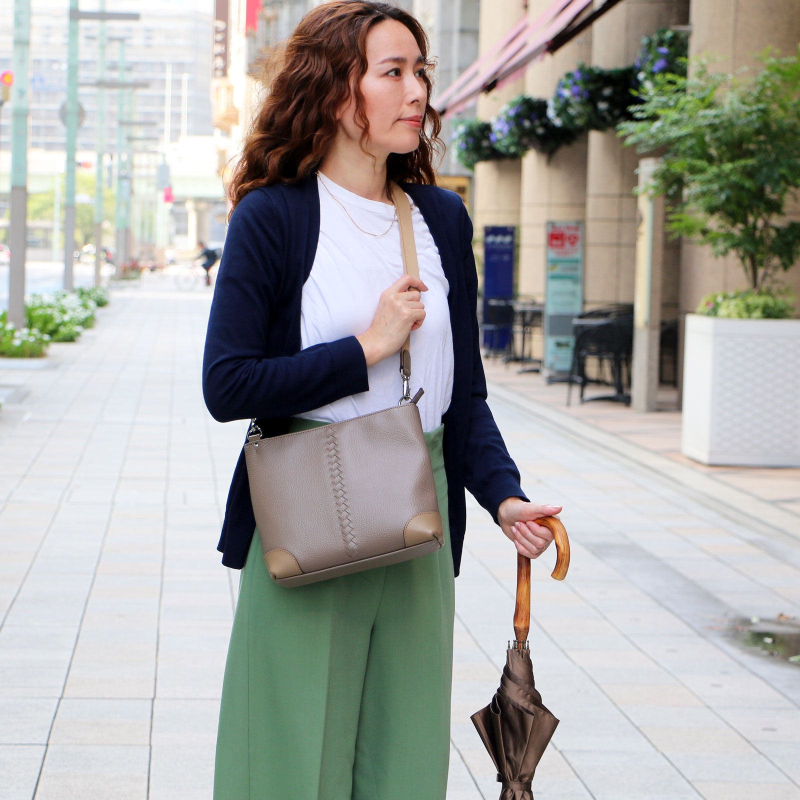 角当て、ストラップ補強部、ファスナー引手など負荷がかかる部分には耐久性に優れた本革を使用し長くお使いいただけます。