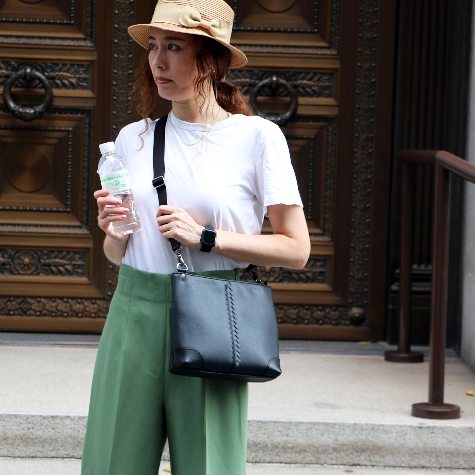 コンパクトサイズながらiPadや500mlペットボトル、日傘、長財布などが入り、旅行先や休日のお出掛けに便利なアイテム。