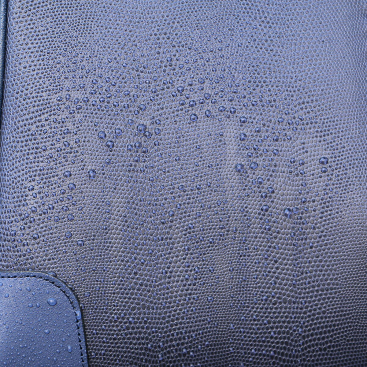 素材は本革の質感を再現すべく光沢を抑えた雨に強く軽いリザード型押しPVC(合成皮革)を使用。ベロや角当てなど負荷がかかる部分には耐久性に優れた本革を使用。 ハンドルには木目が美しい国産ケヤキ材を使用した天然木でラグジュアリーな仕上がりとなっております。